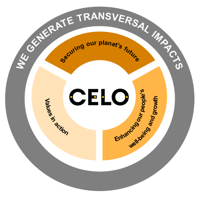 At CELO, la sostenibilidad impulsa todo lo que hacemos. Nuestra estrategia ESG, definida por nuestra doble evaluación de materialidad, se basa en tres pilares que guían nuestro impacto y crecimiento global.